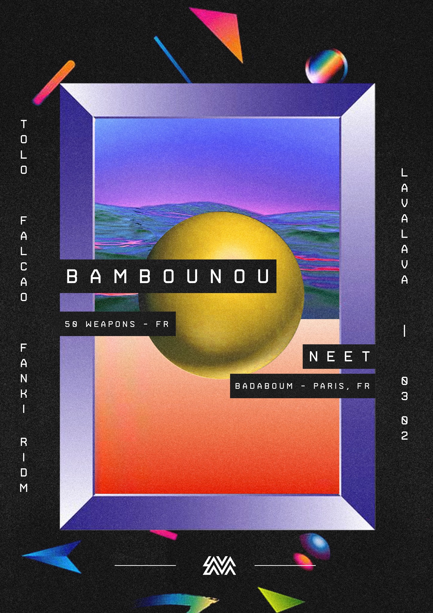Jeremy Guindo, PKA Bambounou, is one of the two French elements of Berlin-based label 50 Weapons, skillfully run by duet Modeselektor with whom he has been working since 2012. Bambounou has quickly raised as one of the major acts of French and European's house and techno scenes. His productions, widely inspired by the Chicago, Detroit and London scenes, have already proven his talent.
